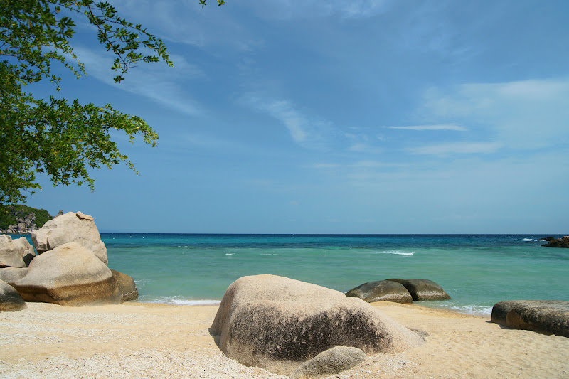 View of Chalok Baan Kao Cove from across the resort we were staying at. These giant rocks on the edge were quite something. Rock cliff on the end looks like a giant Gorilla facing the ocean. Local see it as a Buddha praying btw. Below Gorilla (or Buddha depending on who you ask) there's a pointy rock that looks like a turtle head. Actually "Tao" means turtle in Thai. But not sure if it is named as such because of this rock or not. Two more turtle tid-bits. There is actually a sculpture of a giant Turtle near Mae Haad Beach on the western side. Also - while snorkeling on the other side of these rocks the next day I saw a giant turtle that is native to this area. I was quite startled at first actually to see this huge lump of mass move underneath me . Sorry no picture of that. Don't do wildlife.