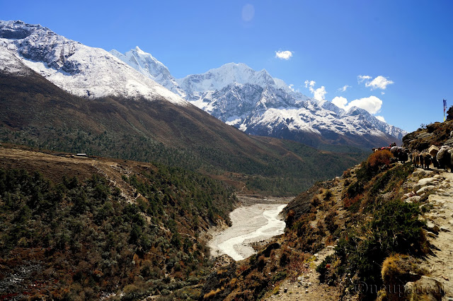 I took this with my iPhone - below Namche on the way to Monjo/Jorsale. You know - on many on line forums, people talk about these trails being crowded and all. Well - here's my answer to that - for the most part this is how crowded it gets and this is what's in store as far view goes. I think it captures both of that essence well.